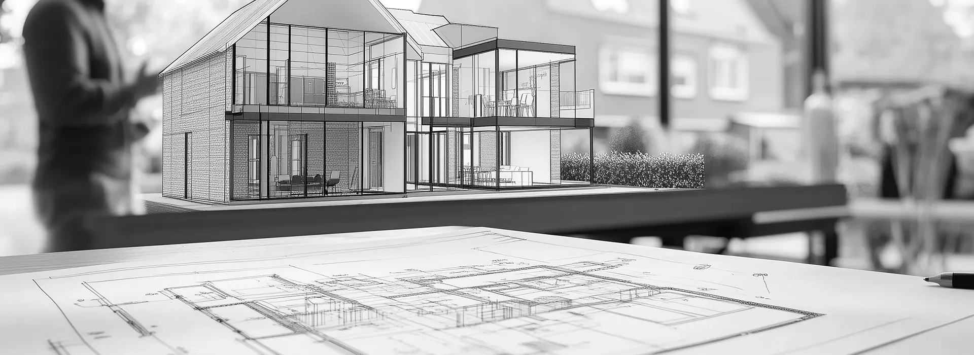 Onze dienstverlening omvat de volledige bouwbegeleiding, waarbij wij de complexiteit voor u vereenvoudigen. We starten met een helder ontwerp, waarin uw wensen centraal staan, en werken dit uit tot een definitief ontwerp, klaar voor de aanvraag van de benodigde vergunningen. Als u kiest voor nieuwbouw, zorgen wij ervoor dat de vergunningsaanvraag volgens de Omgevingswet en de Wet kwaliteitsborging verloopt. We werken nauw samen met een kwaliteitsborger om te garanderen dat aan alle eisen wordt voldaan.